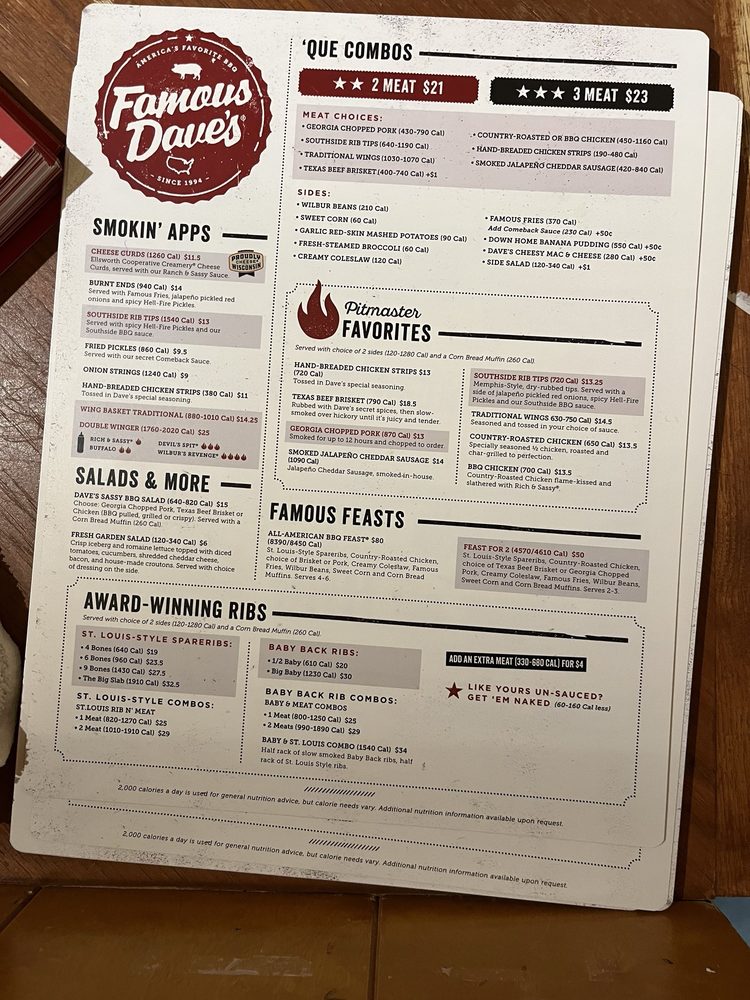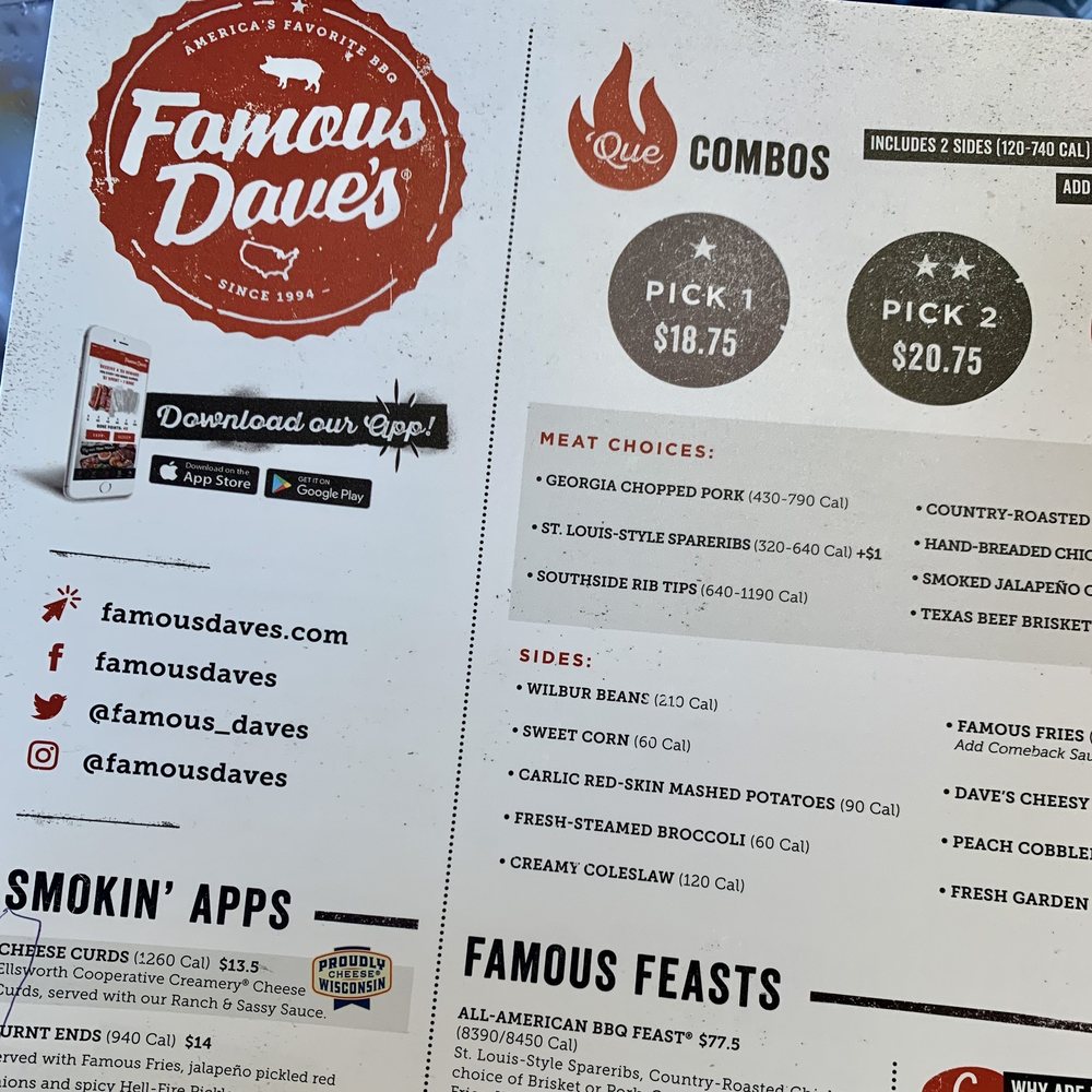 Famous Dave's Bar-B-Que Aurora Menu (Update 2025)